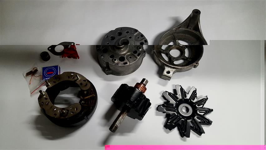 Na pierwszy ogień poszedł rozrusznik. Okazało się, że uszkodzony był mostek diodowy. Na szczęście udało się wymienić tylko uszkodzoną diodę. Poza tym nowe łożyska, szczotki i czyszczenie/lakierowanie ale bez przesadnego polerowania ;)