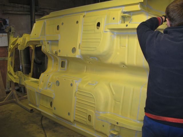 Bazując na tym zrobiliśmy nowe przednie podłużnice, fartuchy komory silnika, panele podłogi, nowe panele komory bagażnika, tylną i przednią belkę konstrukcyjną, nowe tylne podłużnice i dolny pas tylny GT, zrobiliśmy też nowe skrzynki przednie jak i cały pakiet progów. Pracy było sporo bo blisko 1000 godzin jednak ani dolara nie wydaliśmy na części i ich transport. Doświadczenie dość ciekawe zwarzywszy, że na codzień zajmujemy się właśnie autkami do których elementów zwyczajnie na rynku nie ma i ich ręczne dorabianie jest koniecznością.