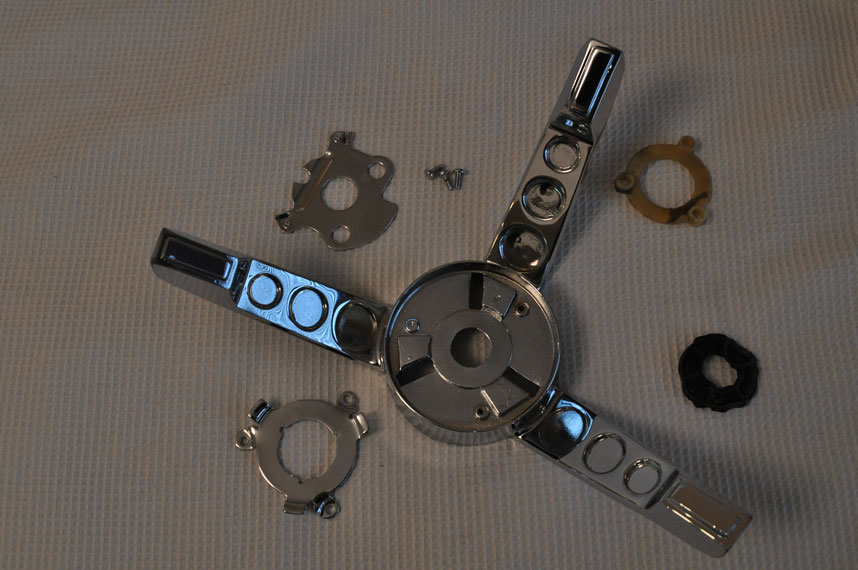 ). Muszę dodać że na jednym z etapów odnowy wypadło jedno oczko co jest widoczne na zdjęciu od tyłu. Teraz zastanawiam się jak to pomalować (tj czarne kółeczka we wgłębieniach), chyba zmatowić i jakiś czarny półmat? Dodatkowo zastanawiam się czy brak dwóch bolców na plastikowym pierścieniu (również widoczne na zdjęciu kierownicy sfotografowanej od tyłu) wpływało na słabo działający klakson? Pewnie kiedyś to wymienię...