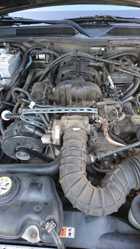 3. Zakładamy wspornik na zawór EGR profilując go tak jak na foto. Przy zaworze przykręcamy nakrętką którą zakładamy na wystającą śrubę u dołu przepustnicy a następnie do obudowy alternatora. Może być to na wkręt jednak powinna być tam śrubka lub nit ale trzeba pamiętać że osłona jest plastikowa i żeby nie pękła.