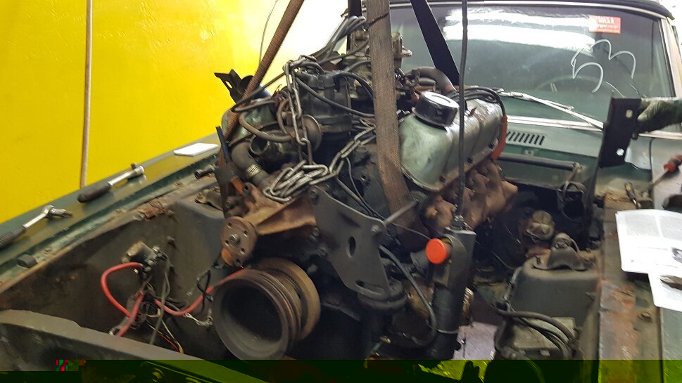 Kolejnego dnia udało się wyciągnąć silnik i skrzynię Mustang wygląda jak SUV .. tylko z przodu