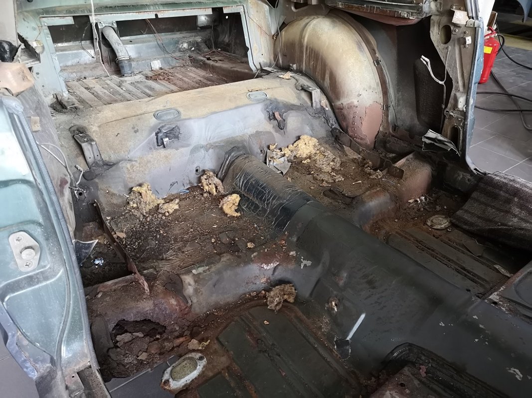 Oczywiście po piaskowaniu wyjdzie stan faktyczny, ale dostał już trochę młotków i np. progi rewelacja, komora silnika w świetnym stanie.