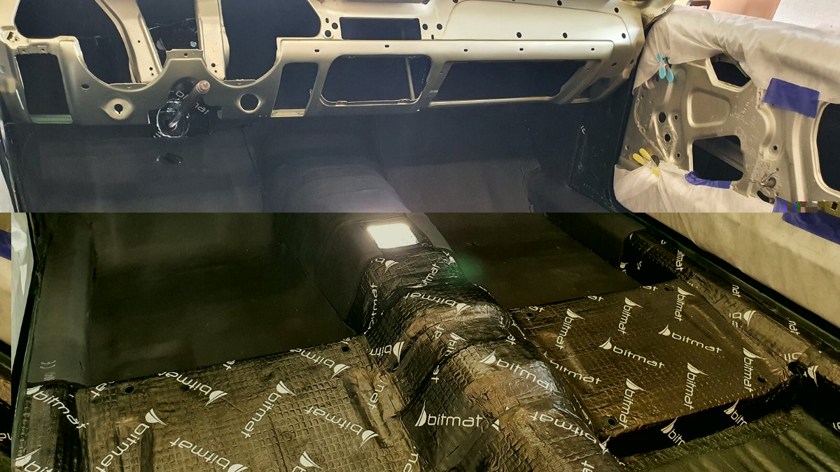 Udało mi się także wyciszyć część wnętrza. Na dół poszła mata butylowa 2mm a na to pianka zamknięto komórkowa. Na razie wyprowadziłem cały przód i połowę podłogi, bo nie wiem jak na to spasuje się dywan na który czekam.