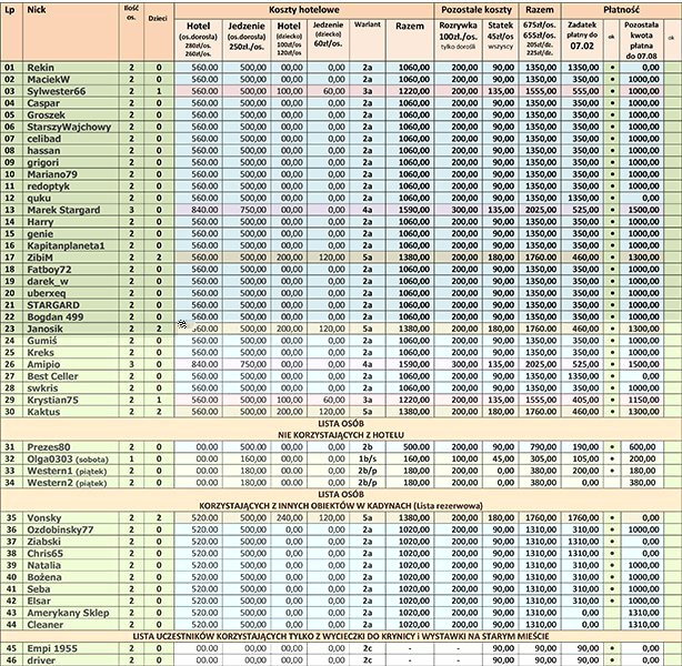 Witam po długiej nieobecności, ale do imprezy pozostał już miesiąc. Oczywiście z dozą nieśmiałości wszystko dopinam, bo jak nam Rząd wprowadzi obostrzenia to nam się wszystko wysypie i bedzie trzeba przekładać termin. Natomiast mam nadzieję, że wszystko odbędzie się zgodnie z planem. Zanim będziecie puszczać drugą transzę, a już pod koniec tygodnia wystartujemy, to proszę zapoznajcie się z listą, czy wszystko jest w porządku. Na ten moment z mojej strony są wszystkie poprawki naniesione i dokonane zmiany.
