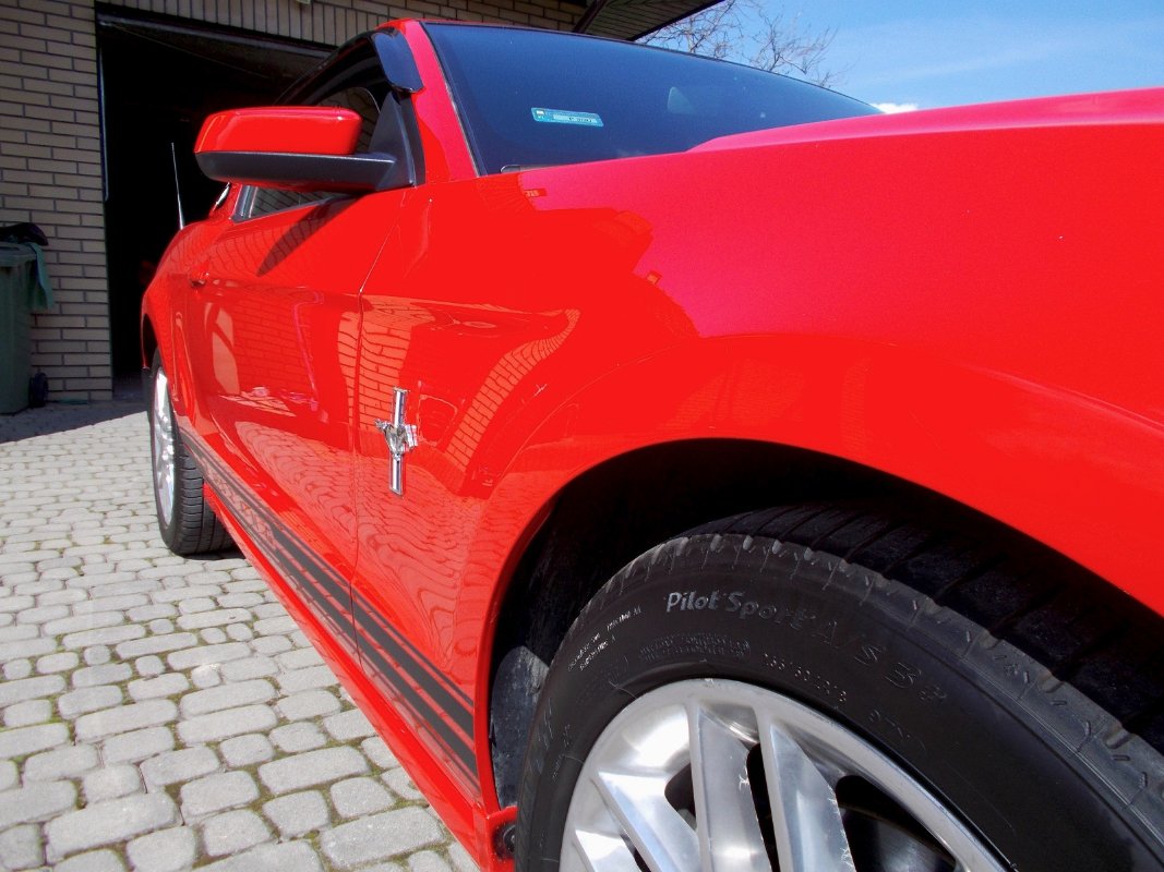 Oprócz pasów i przyciemnionych szyb Mustang nie tuningowany.